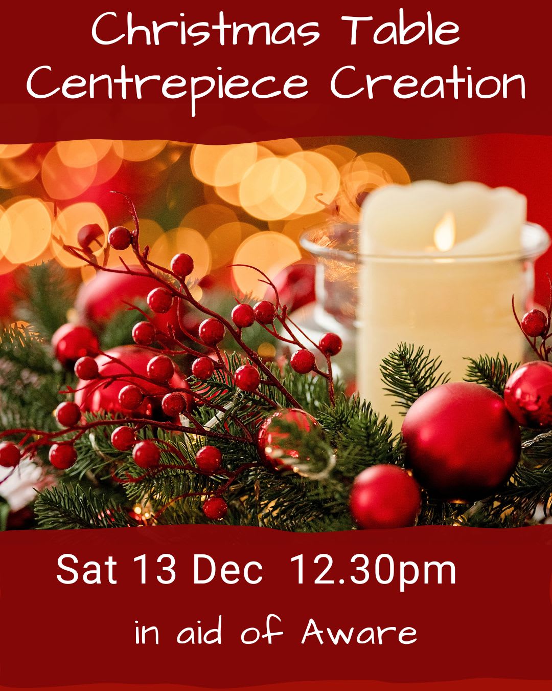 This workshop is perfect for anyone looking to escape the busy-ness, juice up their creative side and get into the Christmas spirit by doing something to support Aware.